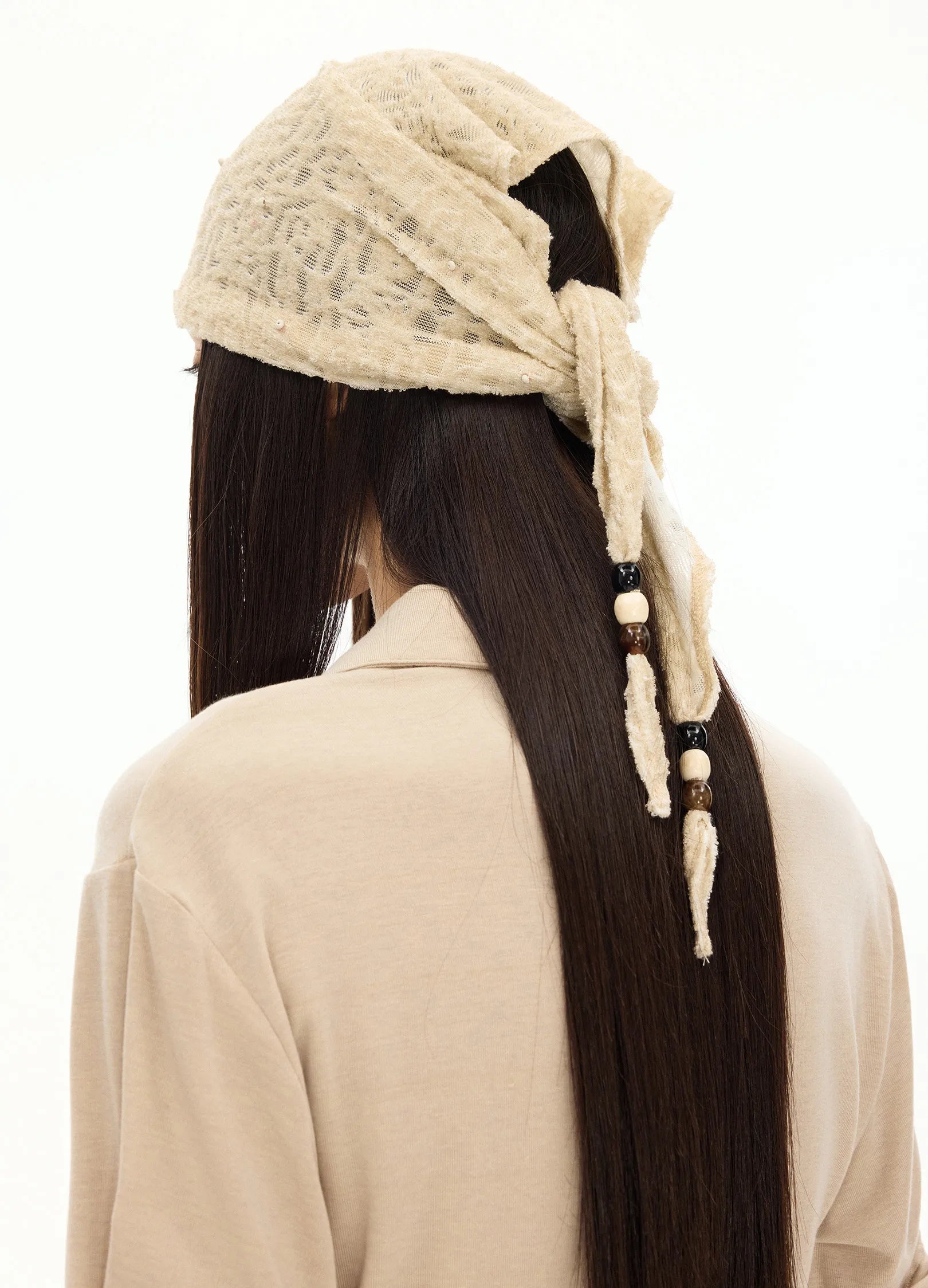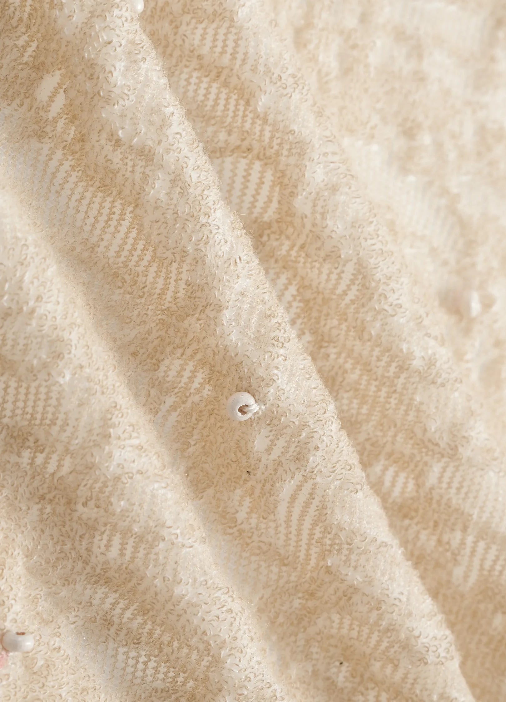 Hand-stitched wooden bead decoration