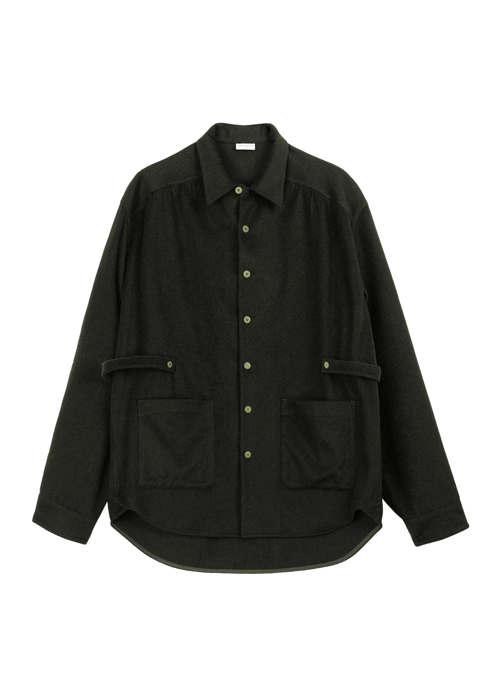 Front pleated relocated shoulder seams