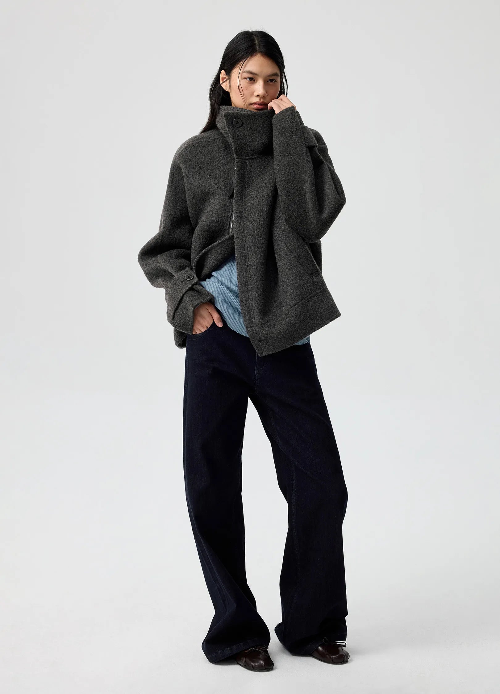 Single-button foldable high neck