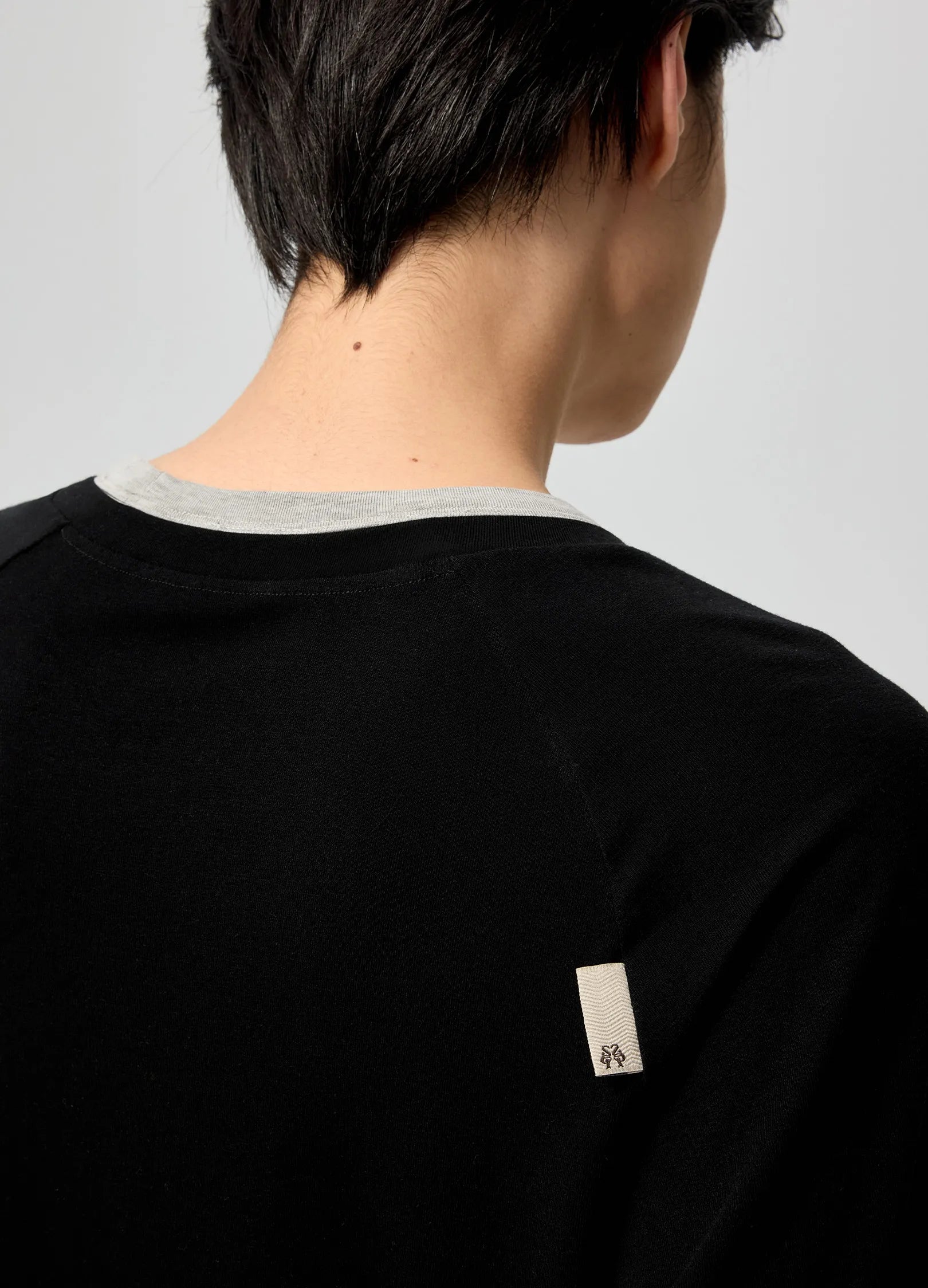 Back raglan sleeve with in-seam label
